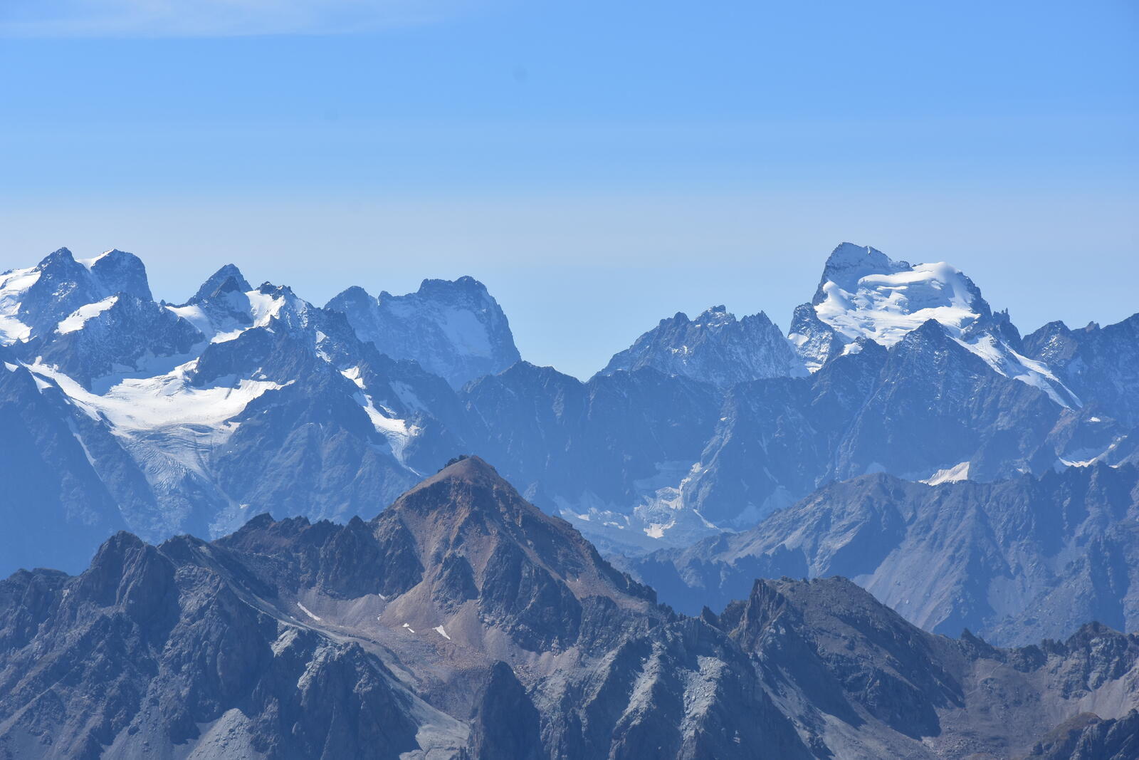 Pour le deuxième jour, l'objectif est le Mont Thabor (3178m) par la Roche du Chardonnet. Mission accomplie avec vue absoluement magnifique sur le massif des Ecrins tout le long du parcours ! Nuit au refuge du Mont Thabor : Merci au gardien pour le chili con carne au menu du soir !