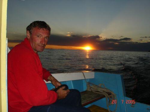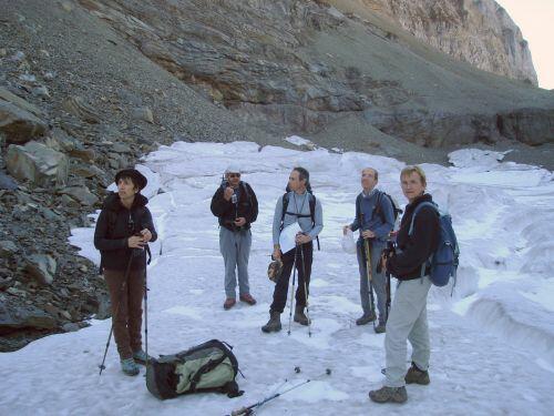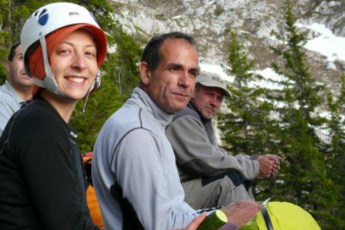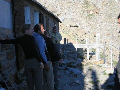 fin de journée....ouf! Il est 20h, l'heure d'un casse-croute! Sur la photo : Nino, Philippe, Pierre et Emilie